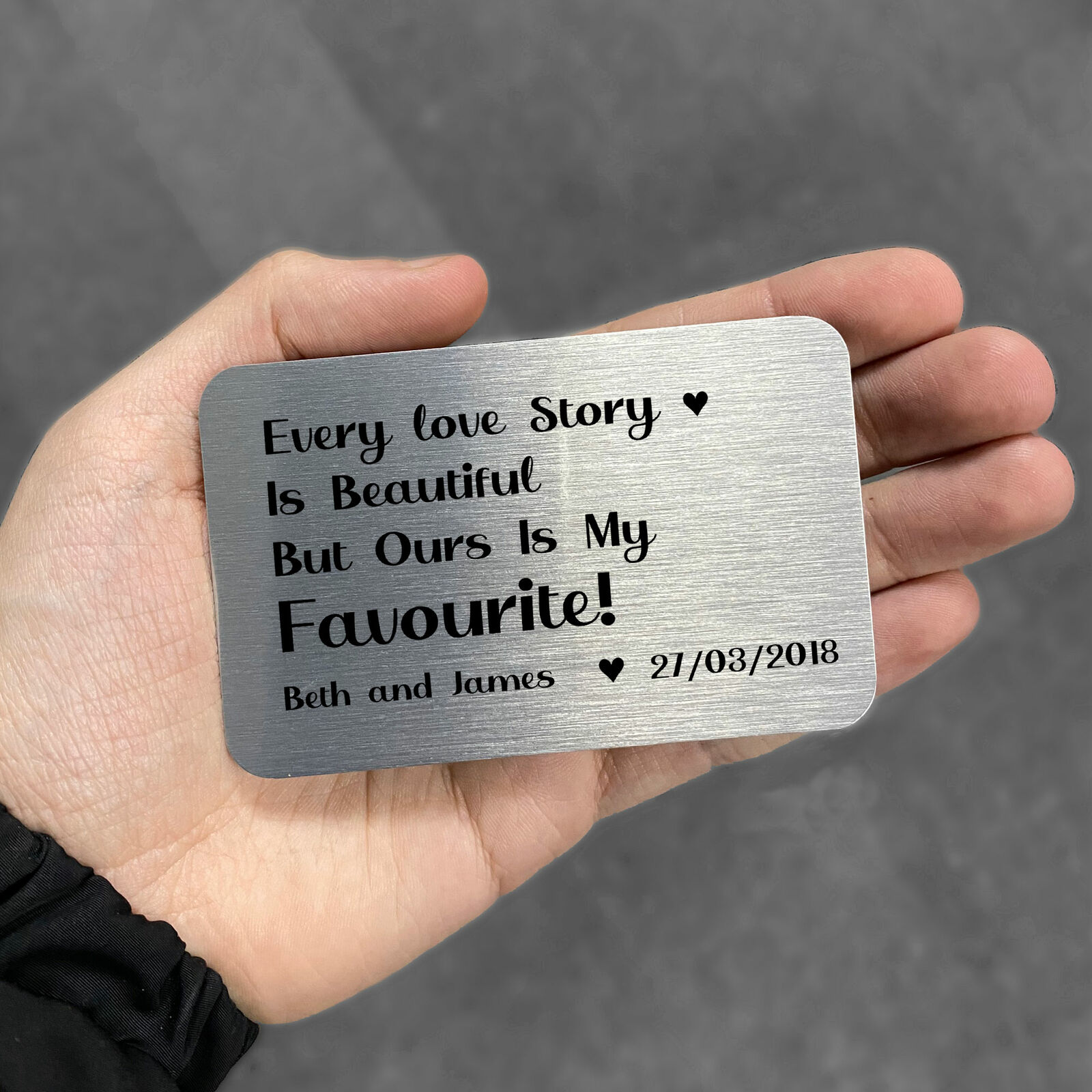 Personalised Metal Wallet Card For Valentines Day or Annniversary Keepsake Gifts