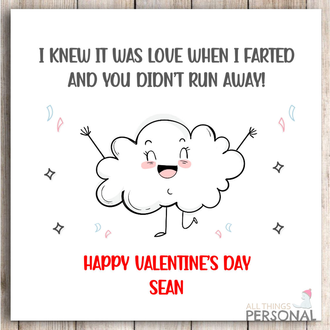 Funny Personalised Valentines Day Card Farted Boyfriend Husband Wife Girlfriend