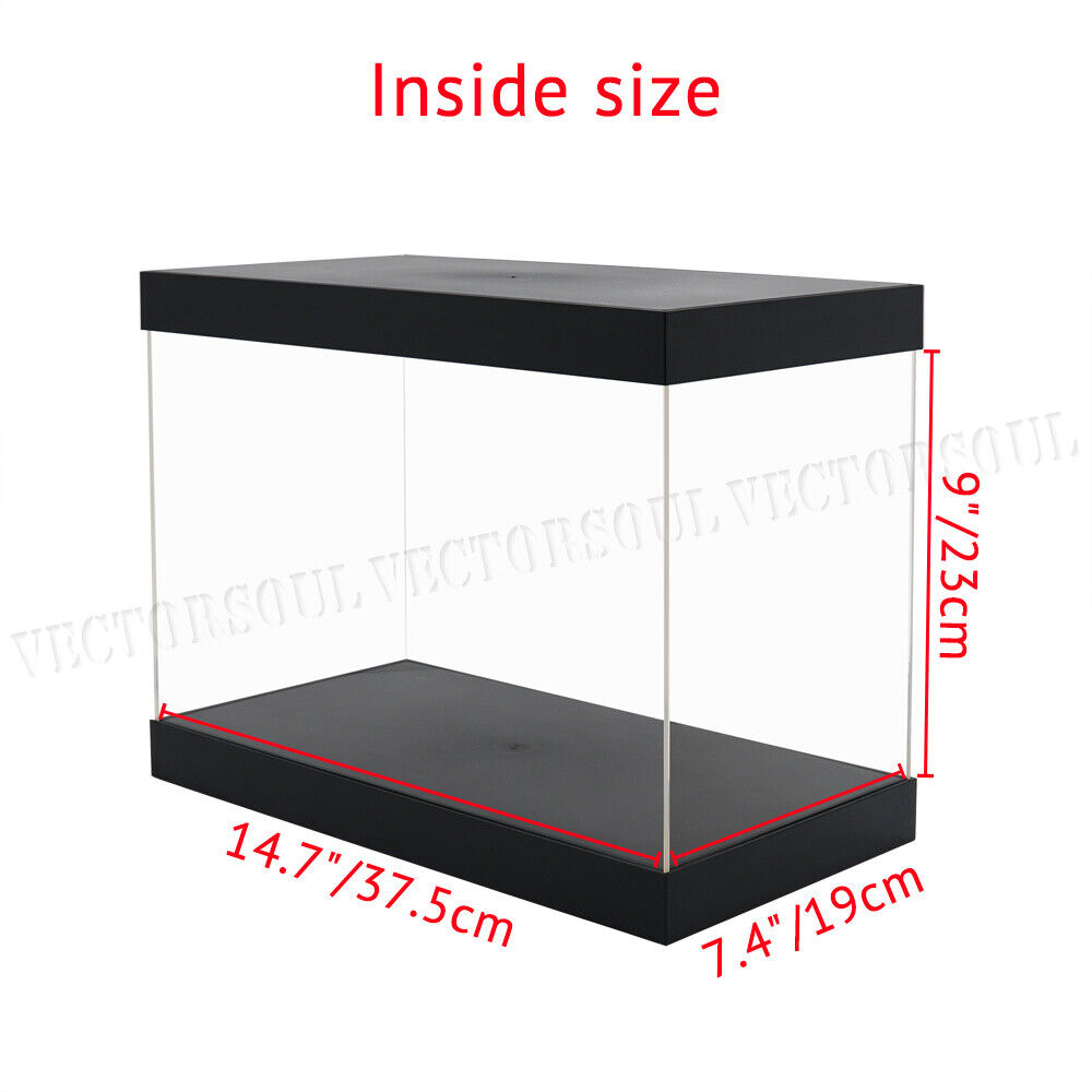 UK 36cm L Acrylic Display Case Self-Install Perspex Big Box Black Base Dustproof