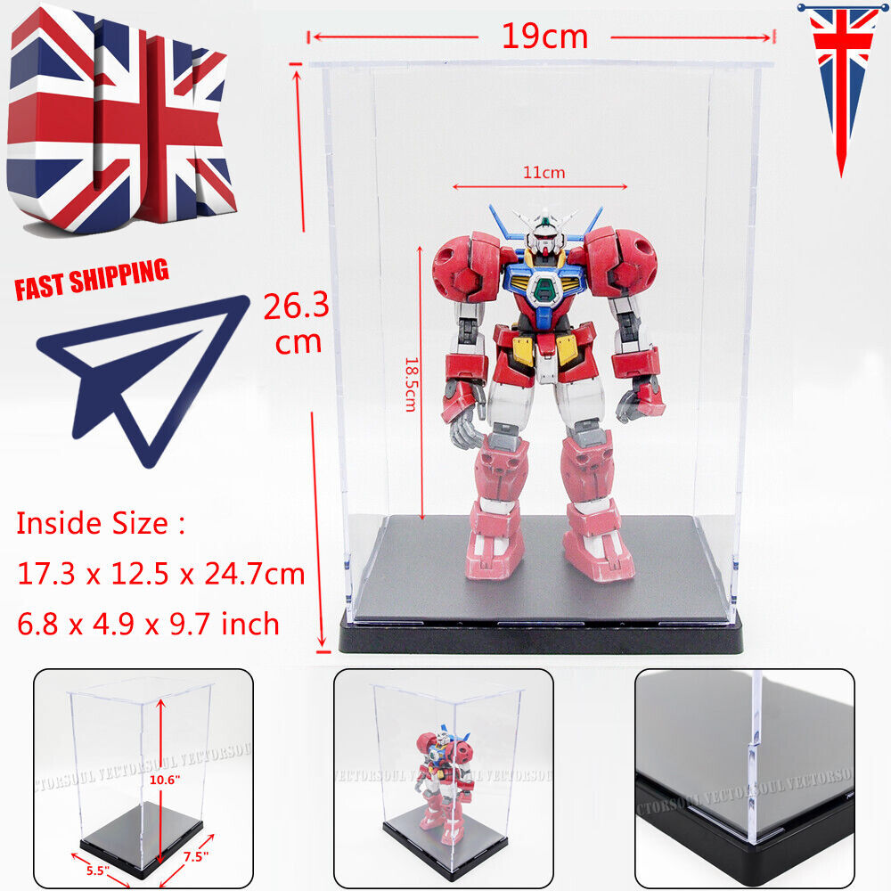 UK Acrylic Display Case Box 27cm H Perspex Plastic Base Dustproof Protection Toy