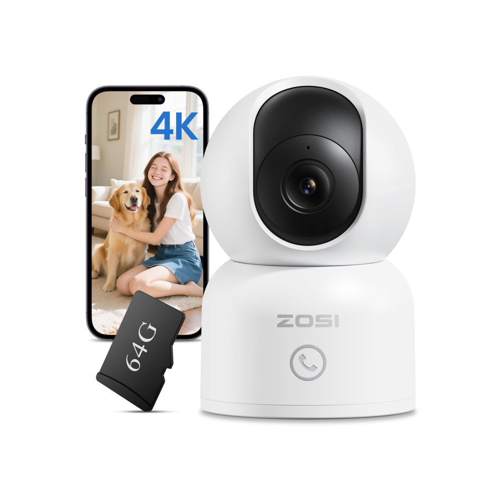 ZOSI 4K Indoor Camera, WiFi Home Security Camera with 64GB Memory Card No Monthly Fee, 360Pan/Tilt Views Baby Pet Cam with App, Dual-Band WiFi Camer