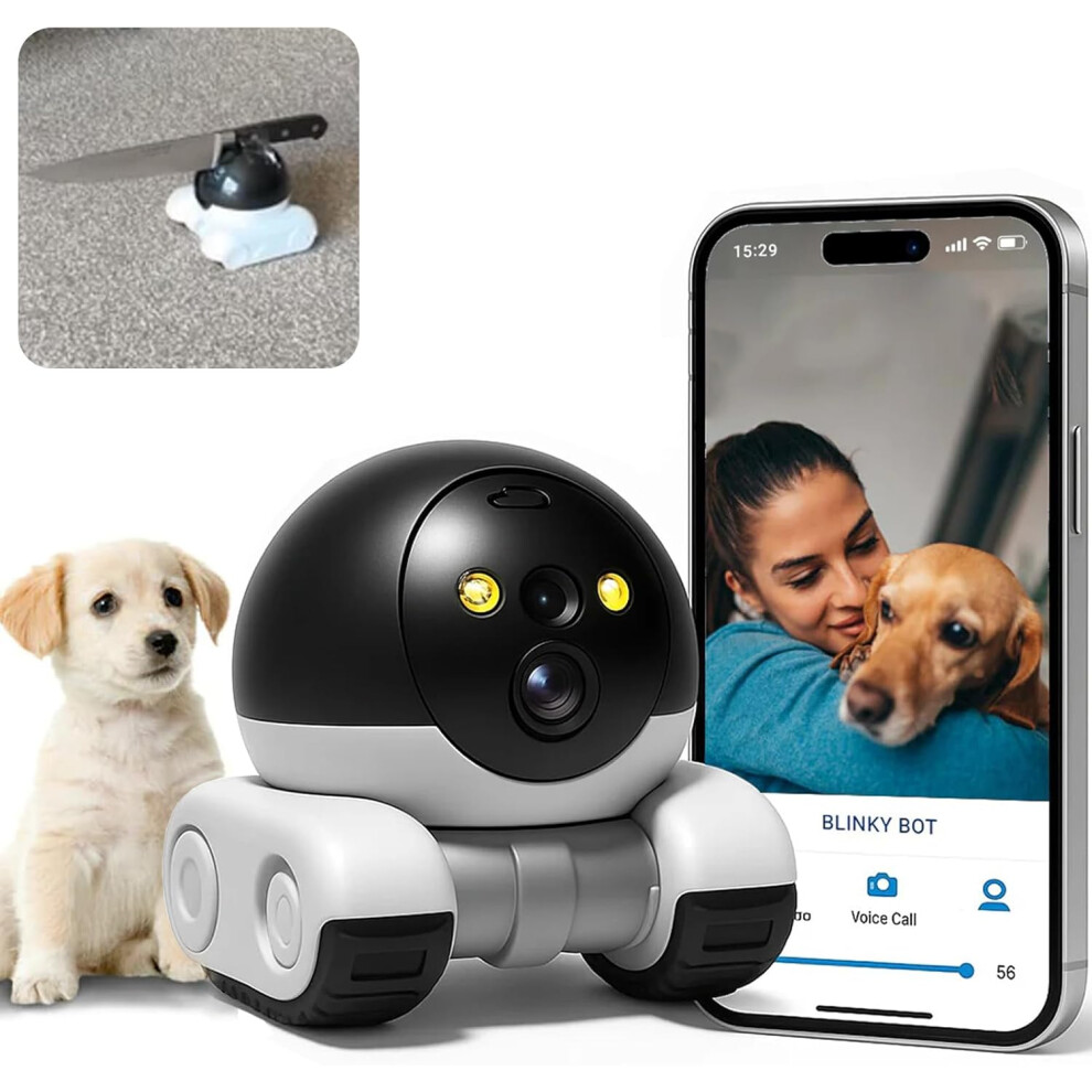 1080p HD DIY Robot Home Camera on Wheels - Movable Pet Cam with Night Vision & App