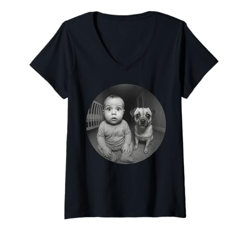Womens Caught by The Baby Cam – Funny New Born and Pet Moment V-Neck T-Shirt
