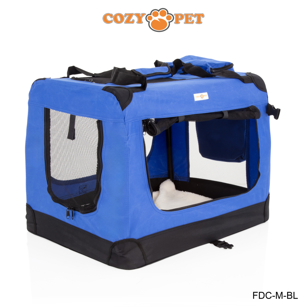 Fabric Dog Crate Blue, M Size 70cm, Cat Pet Carrier by Cozy Pet Transport Travel Cage FDC-M-BL