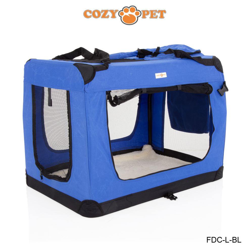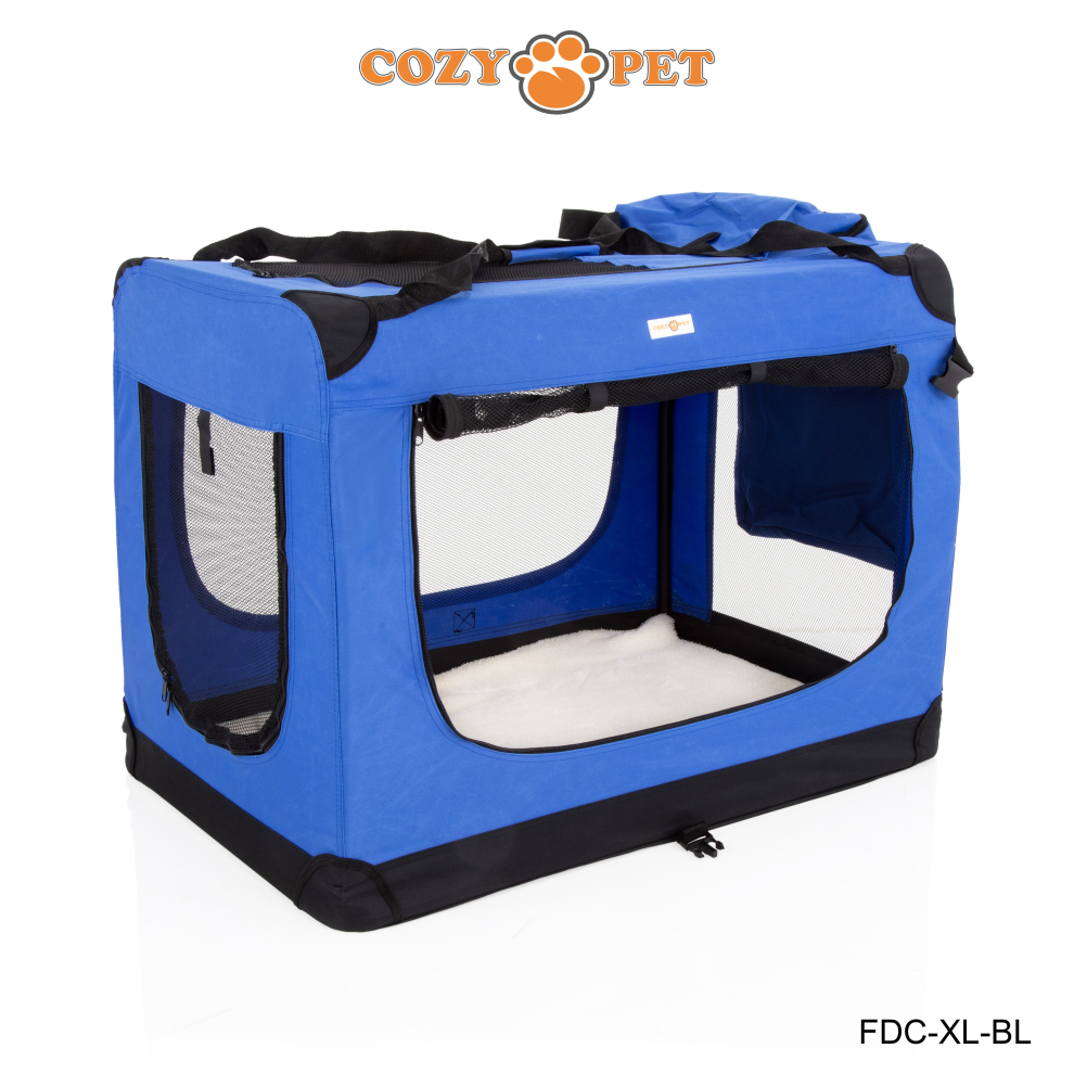 Fabric Dog Crate Blue, XL Size 90cm, Cat Pet Carrier by Cozy Pet Transport Travel Cage FDC-XL-BL