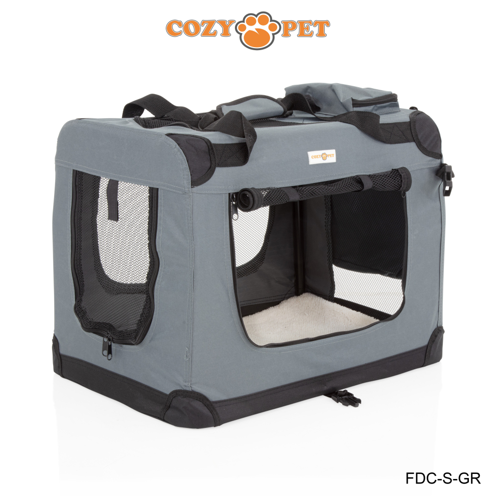 Fabric Dog Crate Grey, S Size 60cm, Cat Pet Carrier by Cozy Pet Transport Travel Cage FDC-S-GR