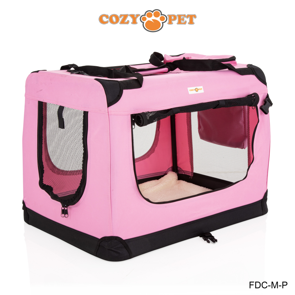 Fabric Dog Crate Pink, M Size 70cm, Cat Pet Carrier by Cozy Pet Transport Travel Cage FDC-M-P