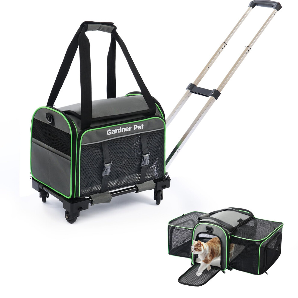 Gardner Pet Cat Carrier with Wheels, Airline Approved Cat Carriers, Breathable Mesh, Expandable Soft-Sided Carrier for Travel, BPA-Free for Cat &