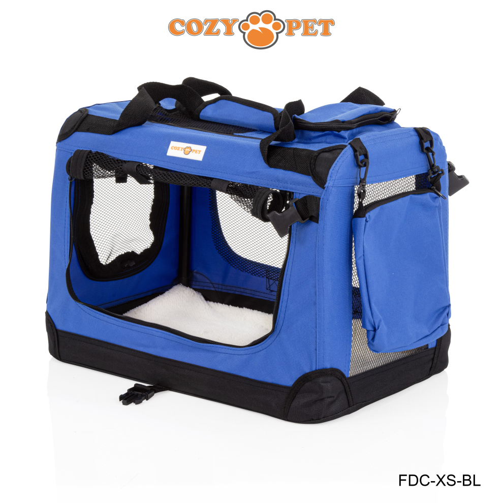Fabric Dog Crate Blue, XS Size 50cm, Cat Pet Carrier by Cozy Pet Transport Travel Cage FDC-XS-BL