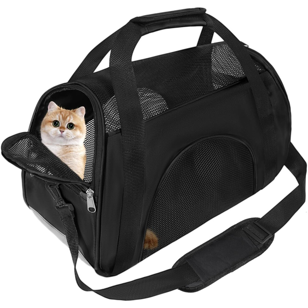 Soft Sided Portable Cat Carrier, Foldable Pet Travel Carriers Bag For Cats/Small Dog/Puppy With Shoulder Strap & Removable Mat,Comfort Cat Basket Airline Approved(Black/Medium)