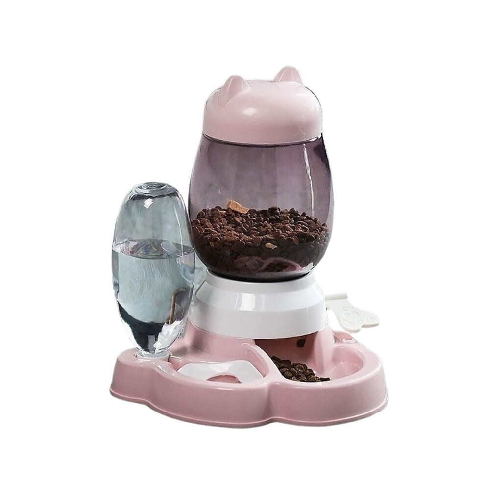 Pet Feeder Automatic Cat Feeder Water Dispenser Dog Puzzle Press Type Large Capacity Pink