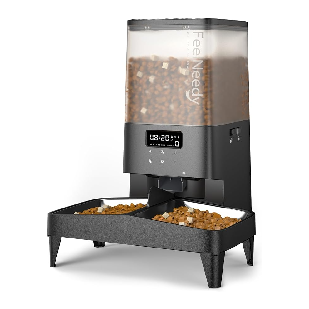 FEELNEEDY 5L Automatic Pet Feeder, Automatic Cat Feeder with Timer, Up to 6 Meals per Day with 2 Detachable Cat Bowls, Battery/Plug-in Power, 10s