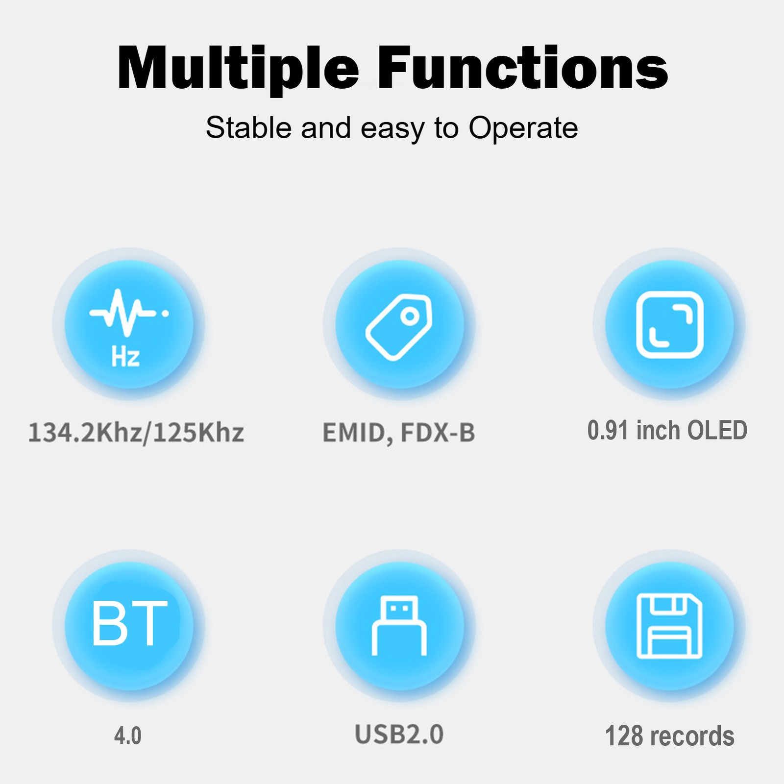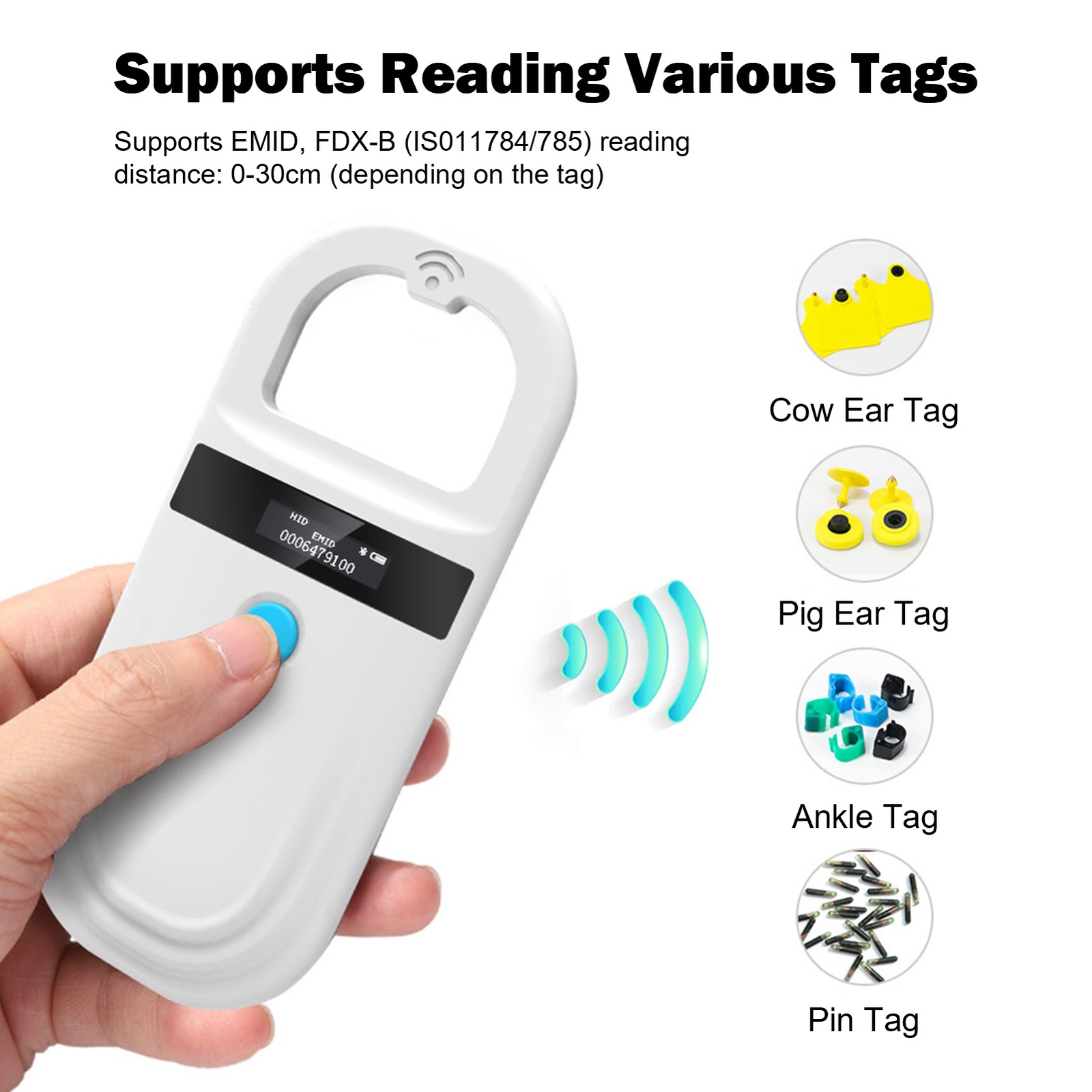Animal Tag Reader Pet Microchip Scanner 134.2Khz/125Khz for EMID/FDX‑B, High Brightness Display, USB Storage, Low Battery Alarm, Rechargeable, Small Animal Management,