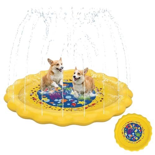 Splash Pad for Kids, Round Sprinkler and Splash Water Play Mat, Dog Paddling Pool, Foldable Summer Garden Outdoor Sprinkler Play Mat Fun Backyard Fountain for Kids Pet Pool Water Toy (Yellow 100cm)