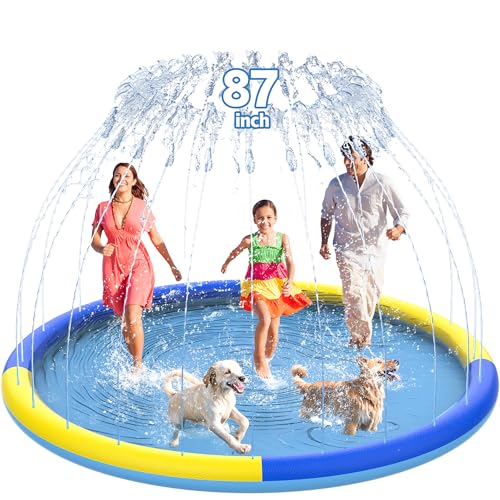 CACSPS 221 cm Non-Slip Splash Pad for Kids and Dogs, Thick Sprinkler Pool, Summer, Outdoor Water Toy, Extra Large Paddling Pool for Kids, Boys and Girls or Pet Dog