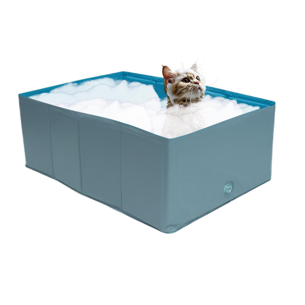 (Blue) Pet Pool PVC Foldable Paddling Pool Pet Bathtub Folding Basin For Dogs Cats Shower Swimming