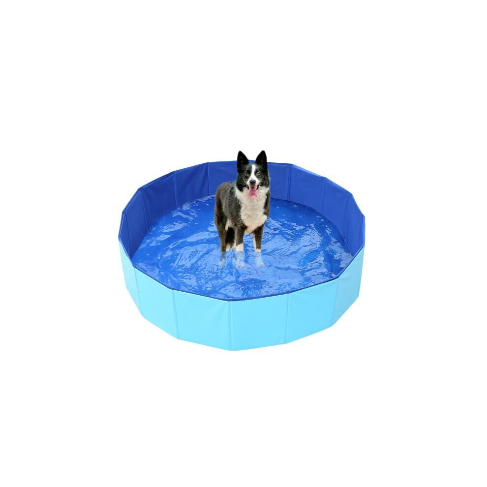 Folding Paddling Pool for Dogs and Cats 120 x 30 cm Portable Indoor Outdoor Blue Pet Bathing Pool