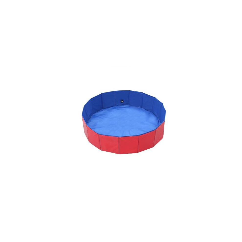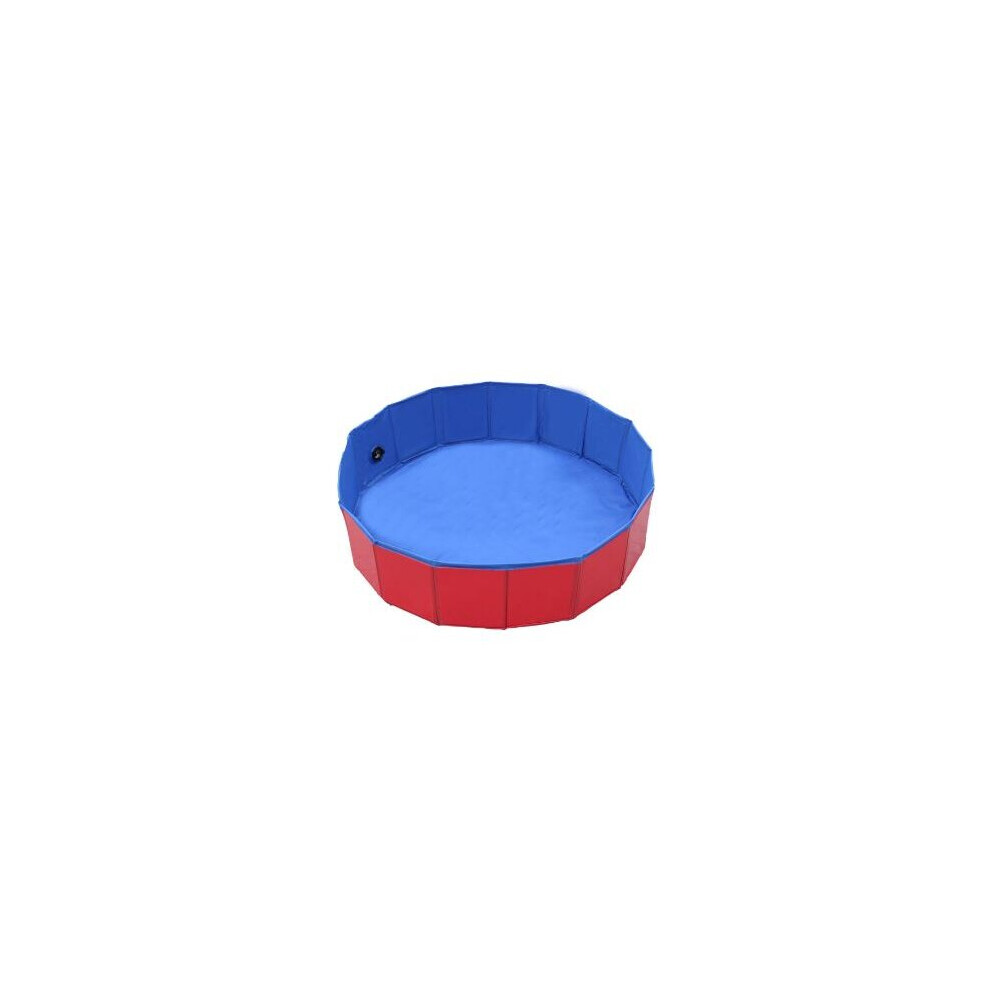 PawHut Pet Paddling Pool Cat Dog Indoor/ Outdoor Foldable 120cm Diameter Red