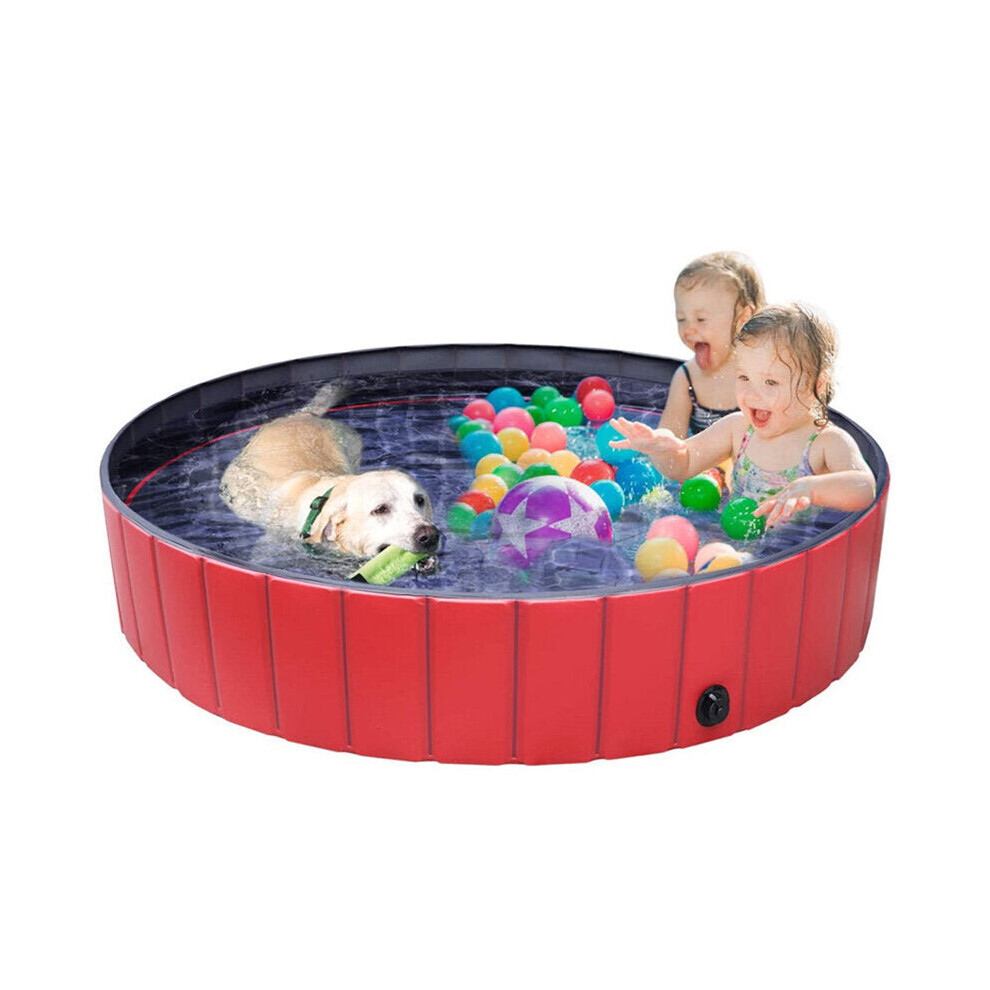 (Red, 80x20cm) Dog Swimming Pool Pet Paddling Pool Large Foldable Portable Outdoor Gargen Pool