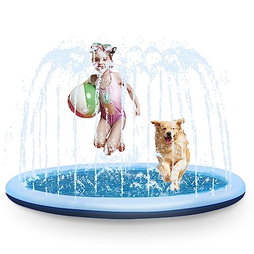 Sprinklers Pad for Kids & Dogs,170cm Large Non-Slip Splash Pad Spray Mat Paddling Pools,Summer Outdoor Garden Water Play Swimming Bathing Pool for Boys & Girls & Pet