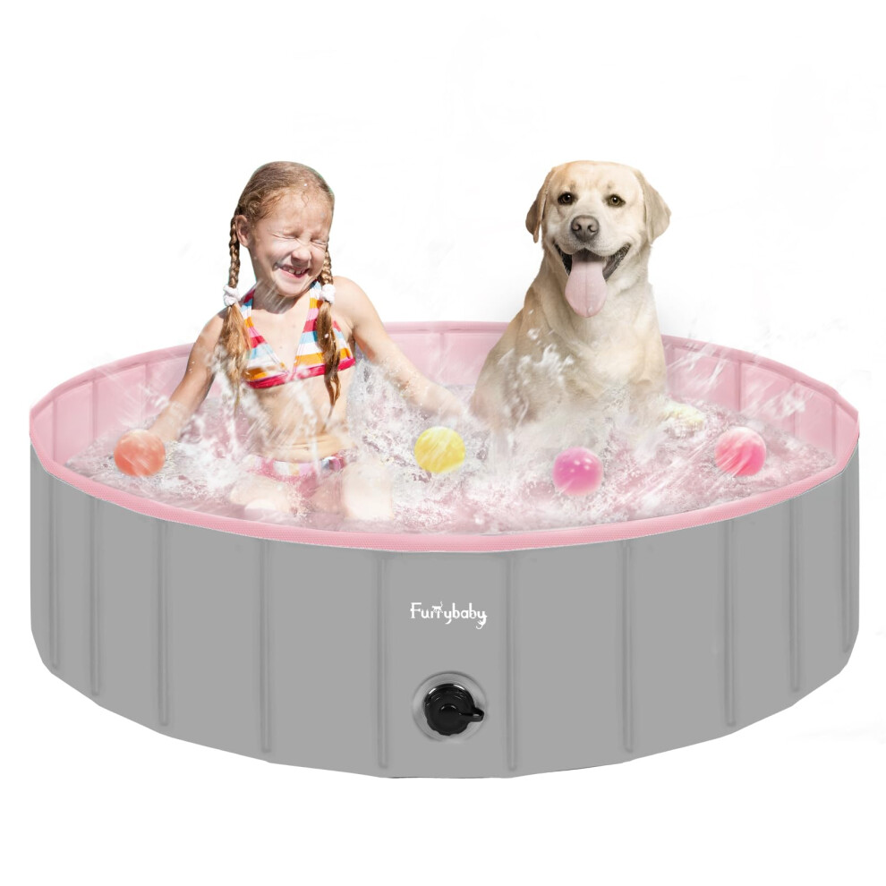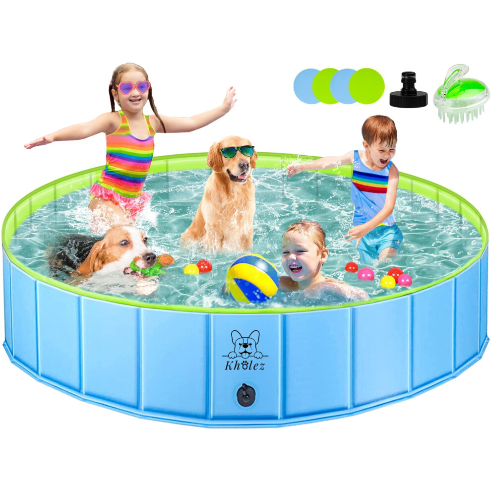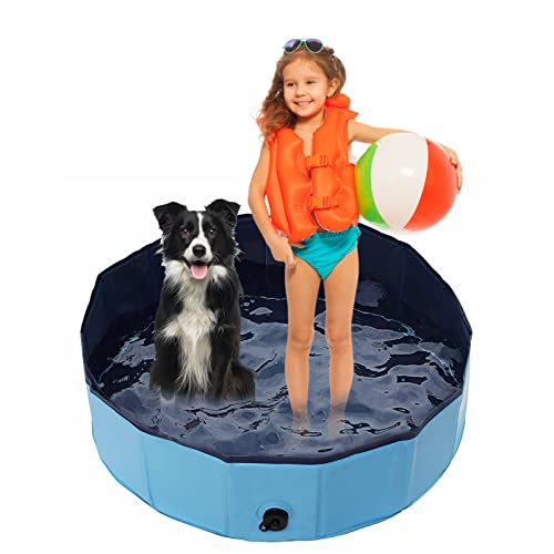 Dog Paddling Pool, Upgraded 120 x 30 cm Foldable Pet Swimming Pool W Bath Brush Outdoor Collapsible Kids bathtub, Kiddie Pool Children Doggie Wading