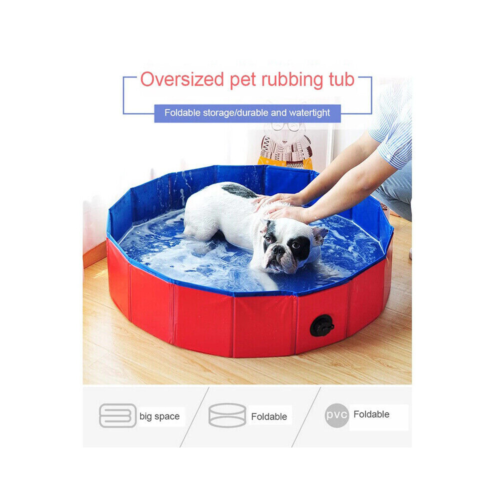 (Red, 80x30cm) Dog Swimming Pool Pet Paddling Pool Large Foldable Portable Outdoor Gargen Pool