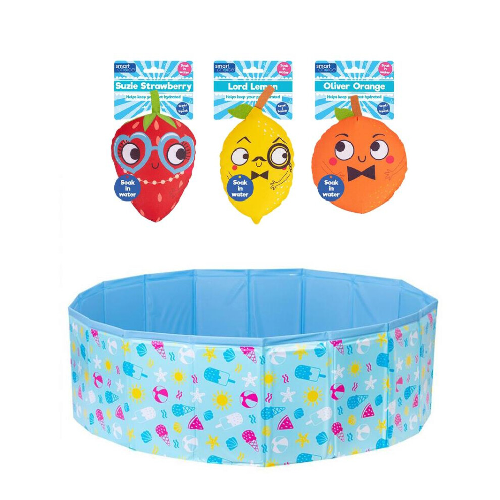 Pet Paddling Pool + 3 Plush Cooling Toys Dog Puppy Summer Hydration Squeak