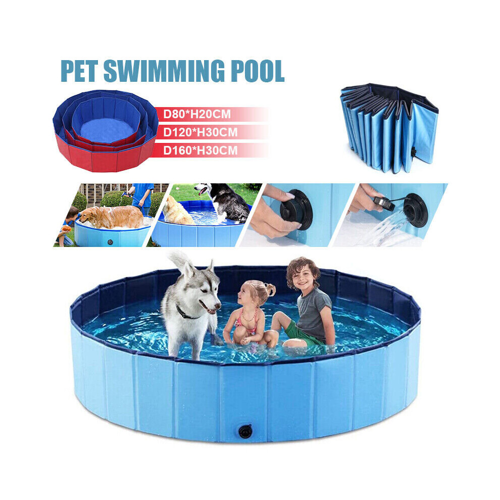 ( Size XXL : 160cm ( Dia ) x 30 ..., Blue) LARGE FOLDING PET BATH DOG SWIMMING POOL PORTABLE BATH PADDLING PUPPY BATHTUB