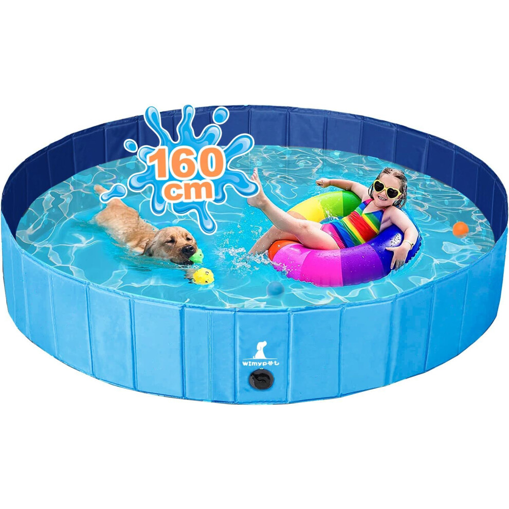 Wimypet Foldable Dog Swimming Pool Puppy Bathtub, Non-Slip Pet Bathing Tub for Dog &Cat, Dogs Paddling Pool in Yard Garden Outdoor (160 x 30 cm)