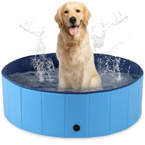 Dsejynxx dogs paddling pool Foldable Dog Pool,Durable Hard Plastic Dog Swimming Pool for Large Dogs, Collapsible Pet Pool for Backyard Indoor, Ideal Kiddie Pool for Dogs and Kids(Color:90cm,Size:)