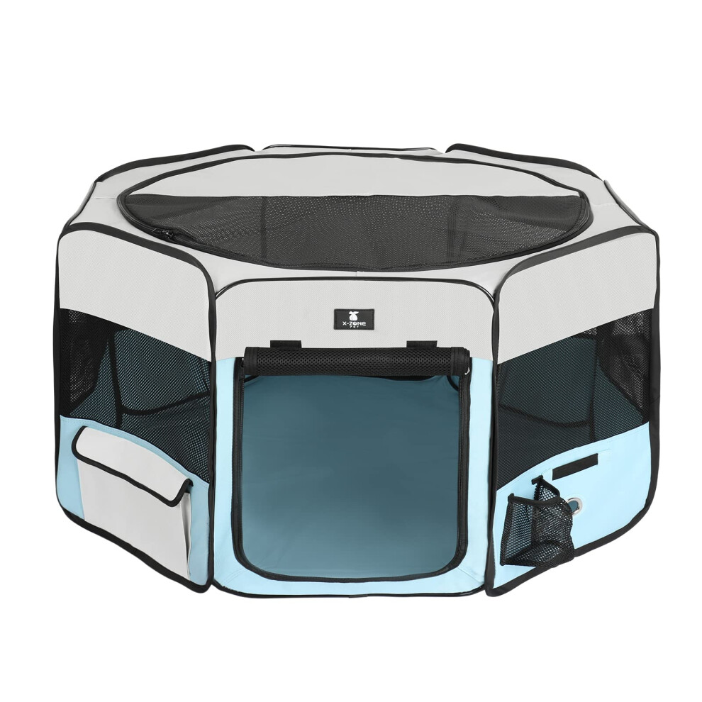 X-ZONE PET Portable Foldable Pet Dog Cat Playpen Crates Kennel/Premium 600D Oxford Cloth,Removable Zipper Top, Indoor and Outdoor Use(Large, Blue)