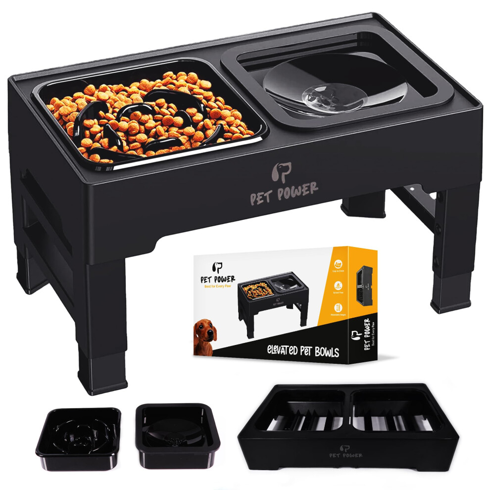 PET POWER Dog Bowls Elevated 4 Adjustable Height Raised Dog Bowl with No-Spill Water Bowl & Slow Feeder Non-Slip Food & Water Bowls for Large Mediu