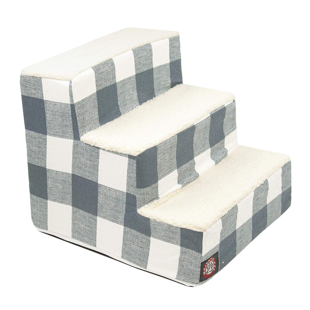 Majestic Pet 3 Step Portable Dog Stairs for Small Dogs to get on Bed Supports 25 lbs or Less - Dog Steps for High Bed with Machine Washable Cover - Pe