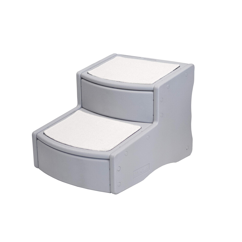 Pet Gear Easy Step II Pet Stairs, 2 Step for Cats/Dogs up to 75-pounds, Portable, Removable Washable Carpet Tread, Essential Grey