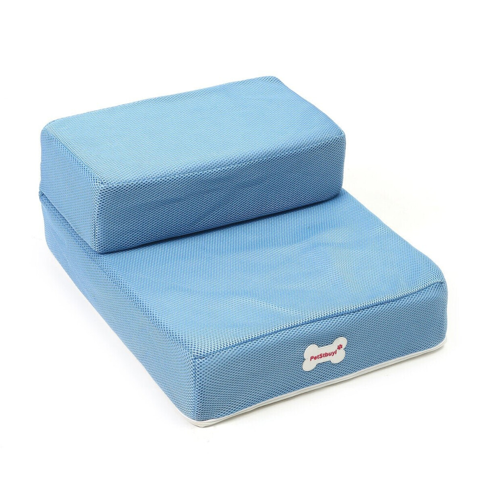 (Blue) Pet Stair 2 Step Portable Puppy Dog Cat Soft Indoor Sofa Bed Folding Ramp Ladder Pet Bed