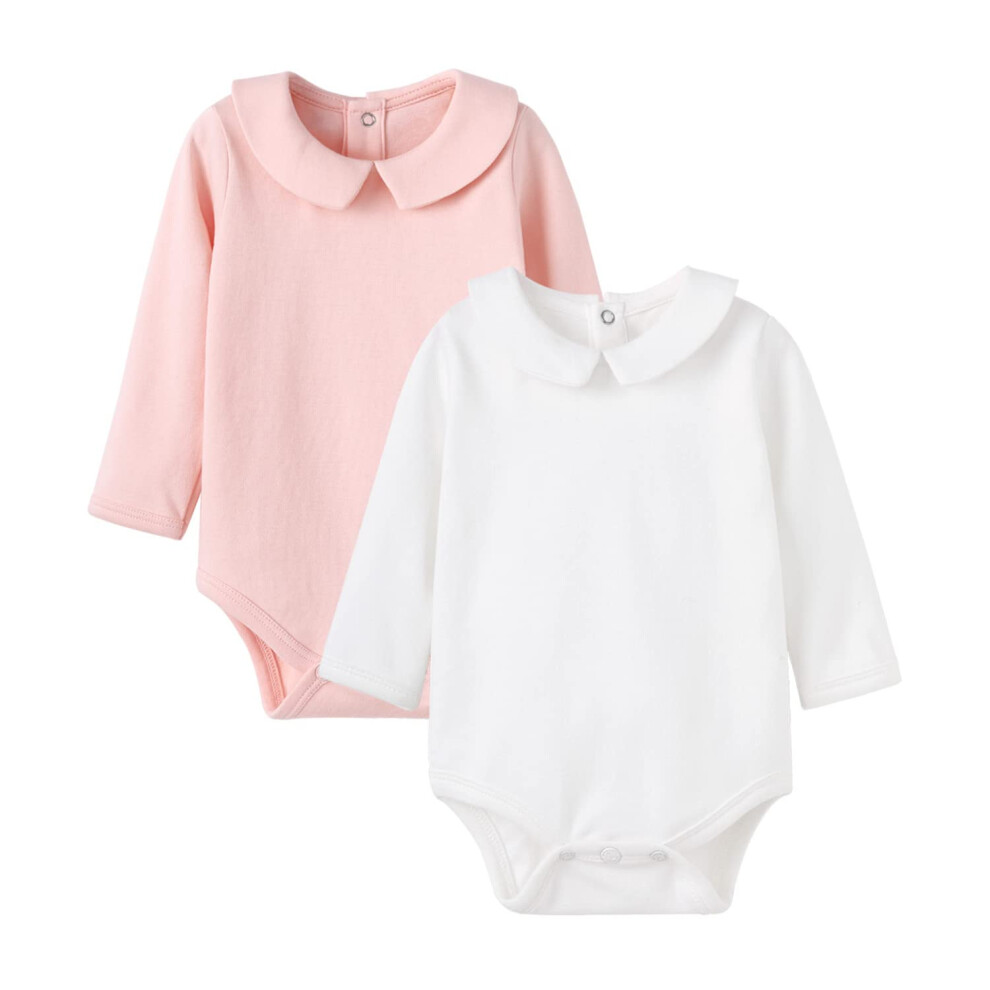 pureborn 2-Pack Baby Girls Bodysuit Long Sleeve Peter-pan Collar Romper Soft Cotton One-Piece 3-6 Months