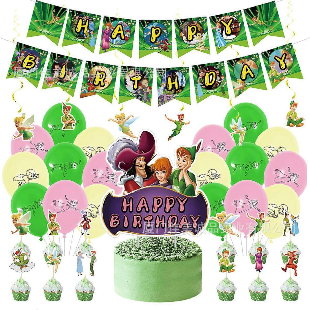 Cartoon Peter Pan Halloween Party Decor Set Kids Birthday Flag Cake Balloon Spiral Arrangement Set 1