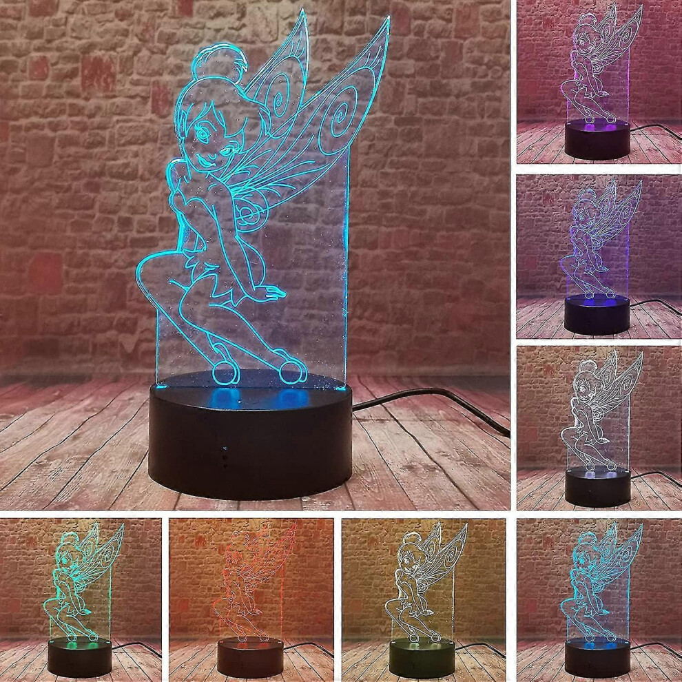 (As show, One size) Angel Tinkerbell Princess Rare Peter Pan Fairy Tinker Bell Snowflake Magic Elf 7 Color Change Action Figure Night Light 3d Anime G