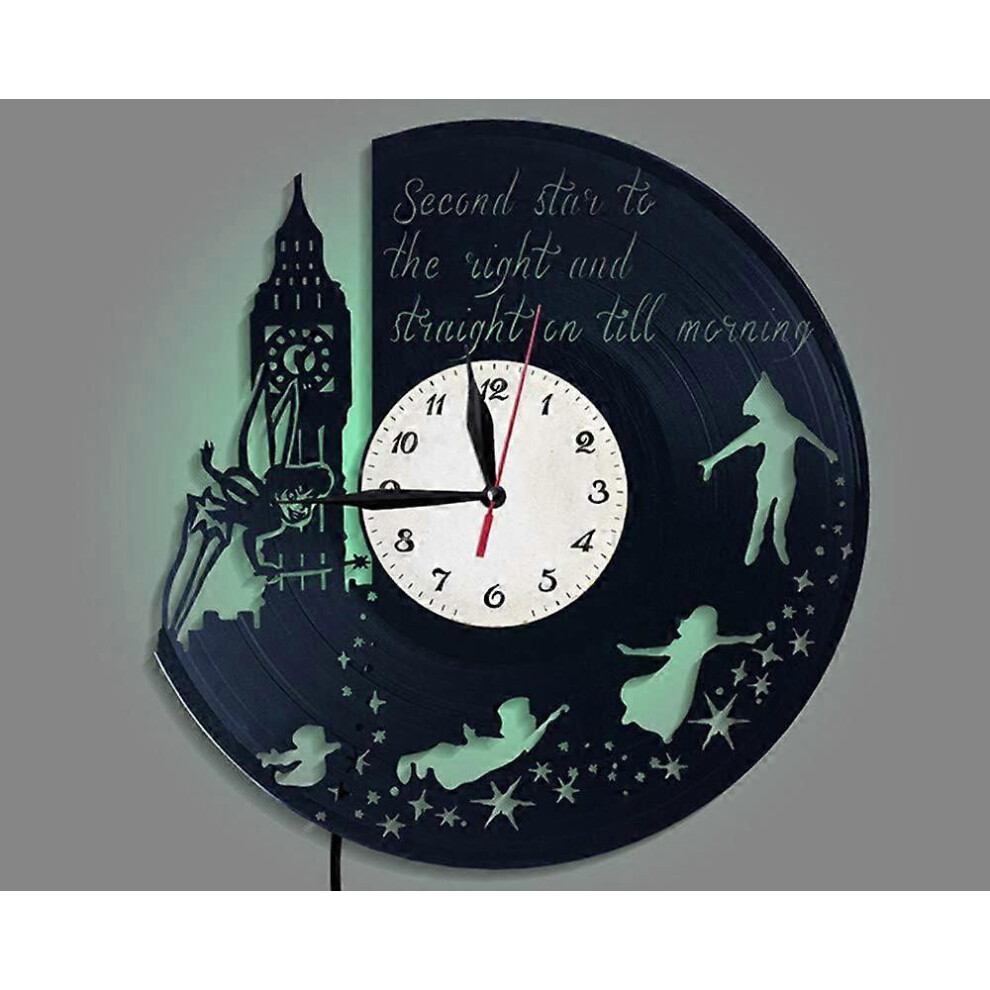 (As show, One size) Record The Peter Pan Clock Vinyl Wall Clock Creative Wall Clock Without Led Light 12 Inches