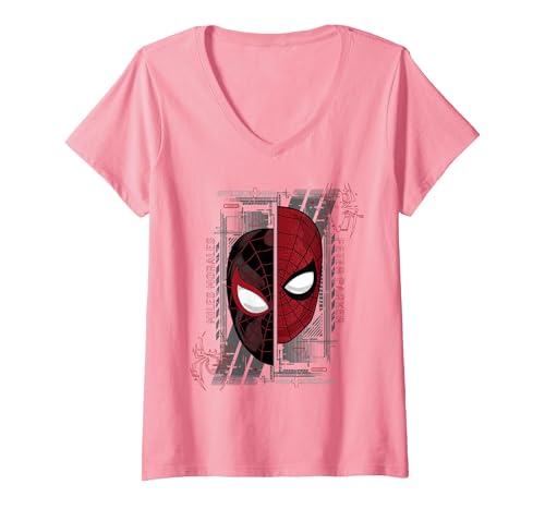 Women's Marvel Spider-Man Peter Parker & Miles Morales Split Mask V-Neck T-Shirt, Pink, X-Large