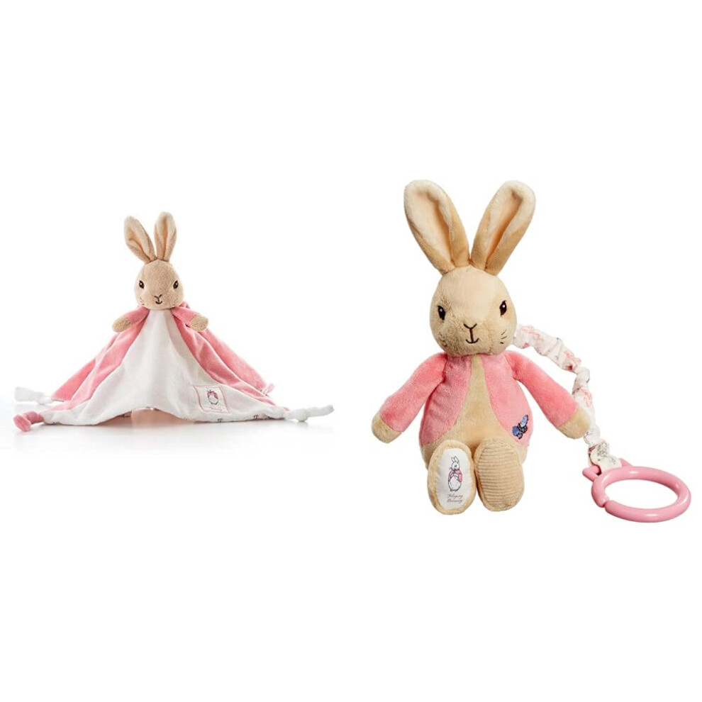 Rainbow Designs Official Beatrix Potter Flopsy Bunny Comfort Blanket - Peter Rabbit Soft Toy Comforter & PO1452 Beatrix Potter Flopsy Jiggle Attachable Peter Rabbit Pram Toy