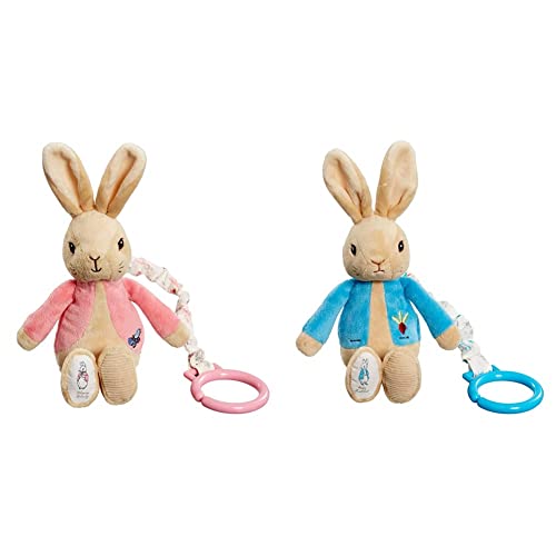 Rainbow Designs PO1452 Beatrix Potter Flopsy Jiggle Attachable Peter Rabbit Pram Toy,Pink & PO1451 Beatrix Potter Peter Rabbit Jiggle Attachable Soft Toy - Unisex Pram Toy for Toddlers and Babies