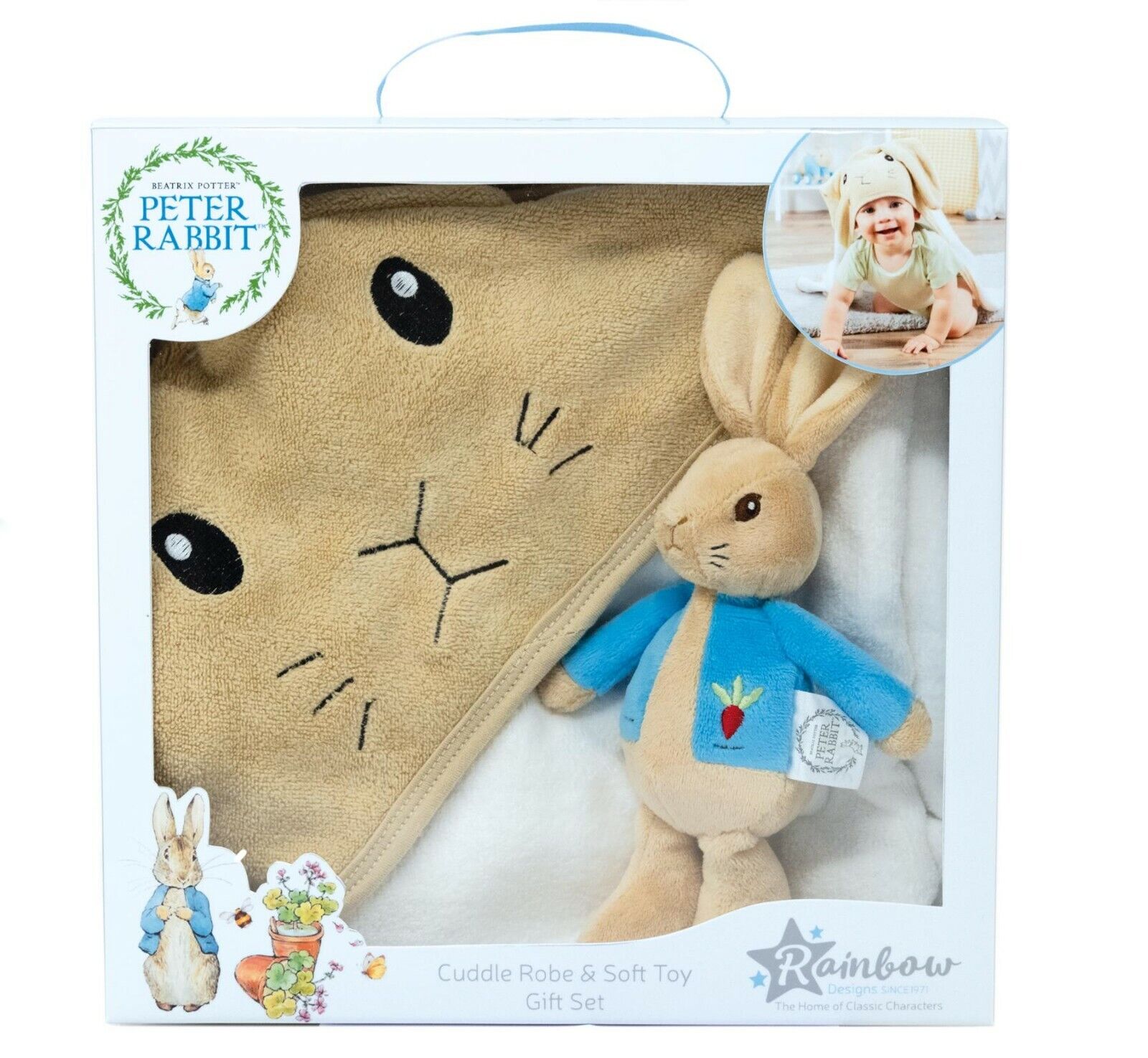 PETER RABBIT - SOFT TOY AND CUDDLE ROBE GIFT SET - PERFECT BABY GIFT **NEW**