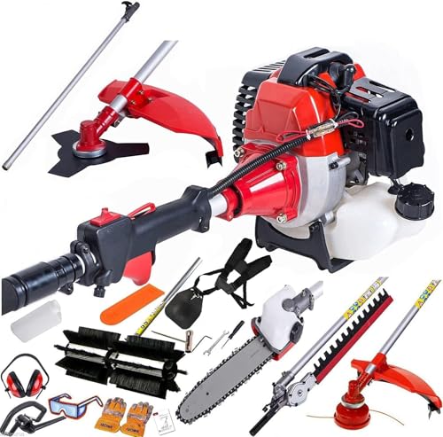Dealourus 5 in 1 Multi Function Garden Tool Petrol Strimmer Brush Cutter Chainsaw hedge trimmer pruner power sweeper broom extension pole