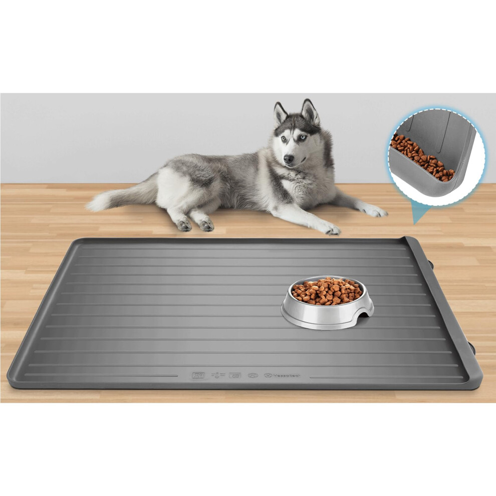 PetSafe Pet Food Mat - 39''x27'' with Residue Collection Pocket Waterproof Silicone Bowl Mat for Dogs & Cats Light Grey