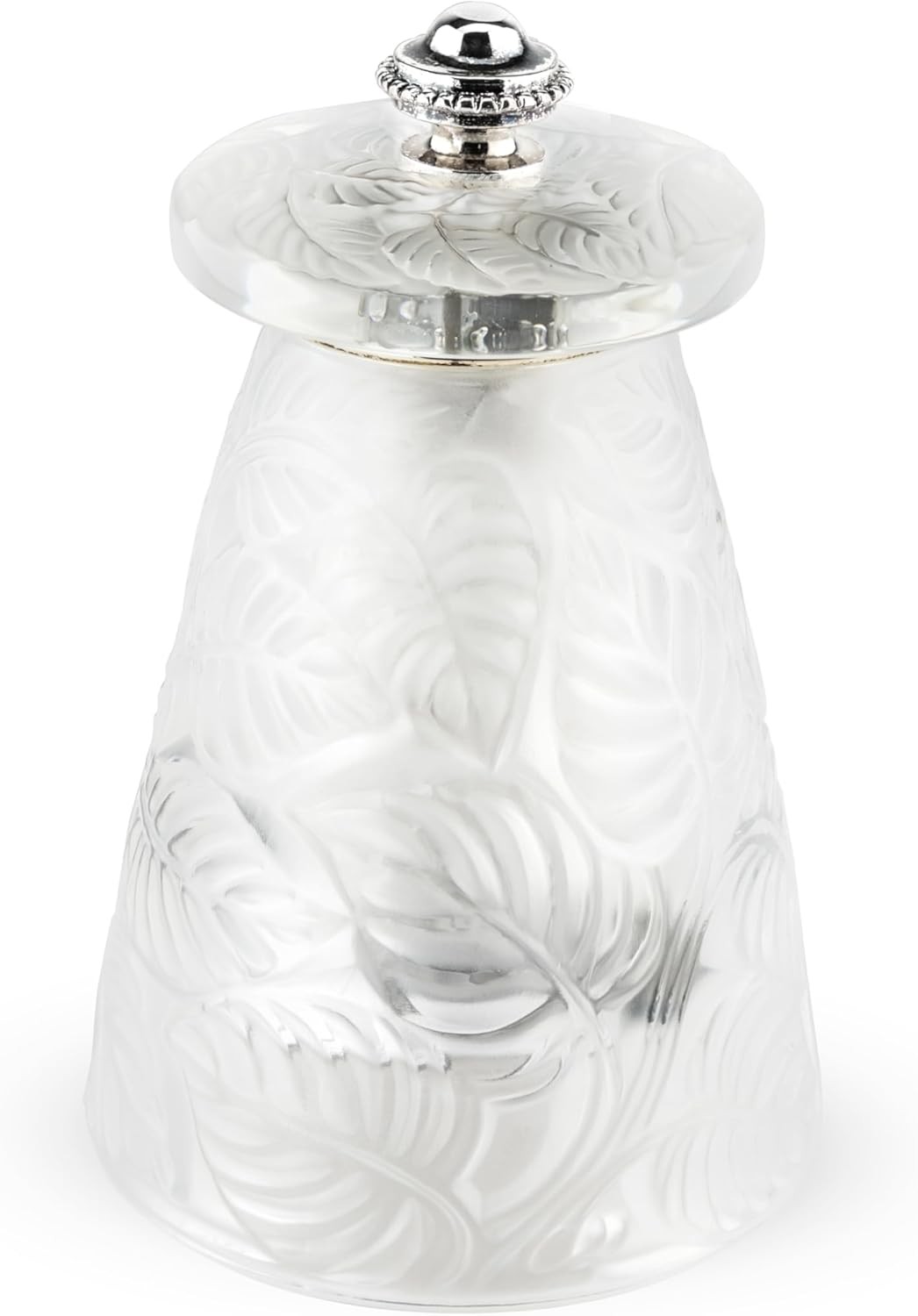 Peugeot Lalique Feuilles Salt Mill - Clear Crystal - Handcrafted in France - Original René Lalique Design 1924 - Stainless Steel Grinding Mechanism