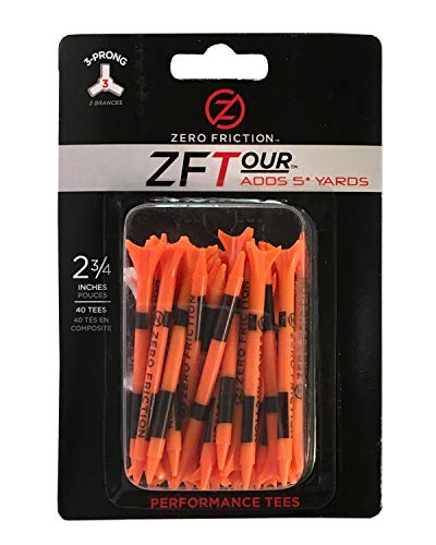 Zero Friction Tour 3-Prong Golf Tees 40 Pack, 2-3/4 Inch Size, Orange