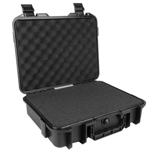 Waterproof Shockproof Hard Case with EVA Foam Insert, Carrying Tool Storage Box with Handle, Safety Lock Hole & Air Valve for Drones, Cameras & Equipment