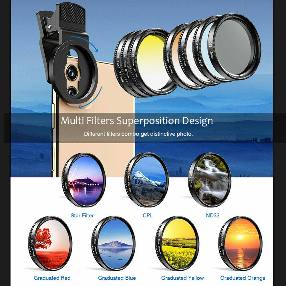 APEXEL APL-37UV-7G Professional 7in1 Phone Graduated Lens Filter Kit 37mm M9J1