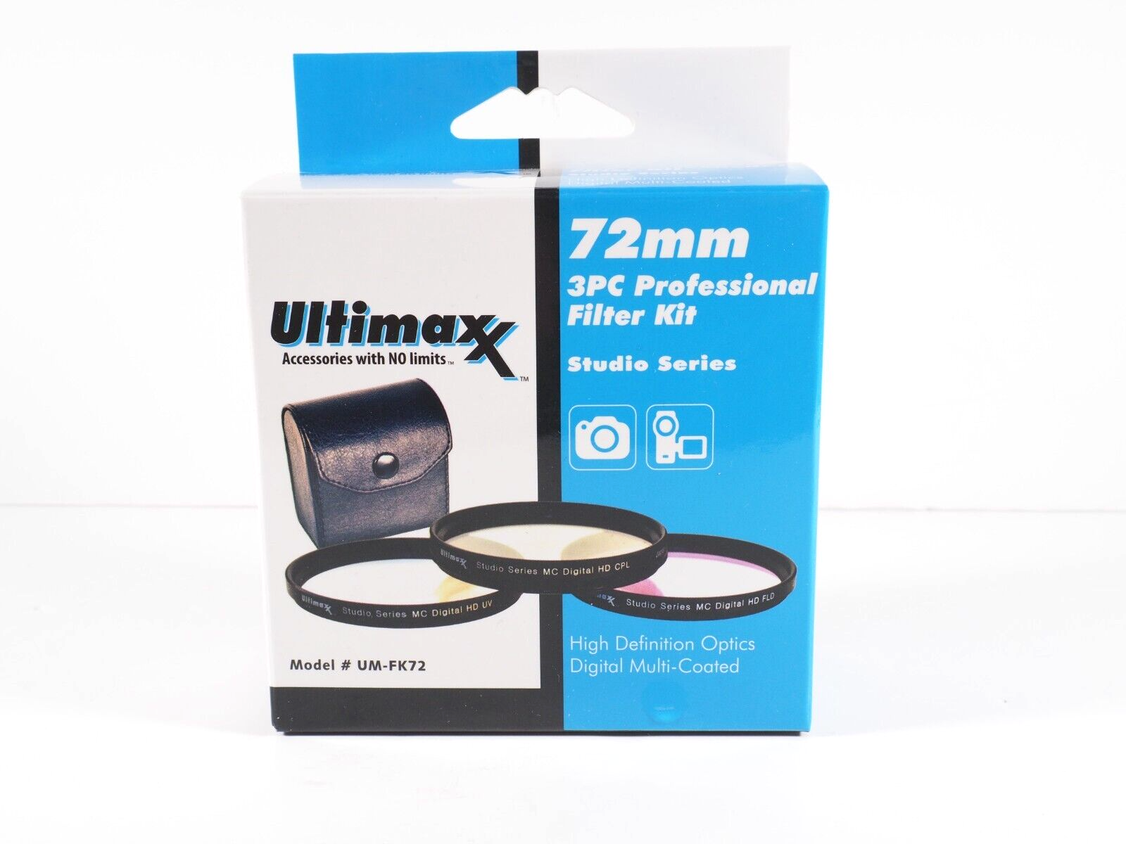 Ultimaxx 3 pc Professional Filter Kit 72mm UV , CPL, FL-D and Case Model UM-FK72